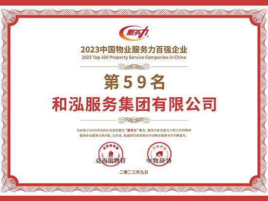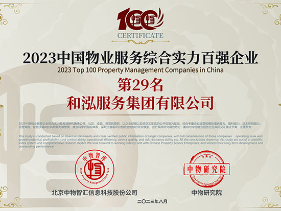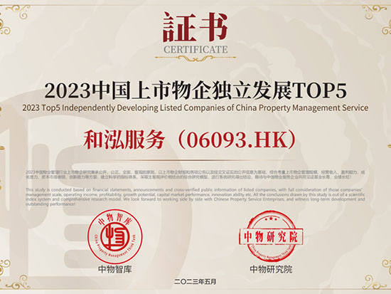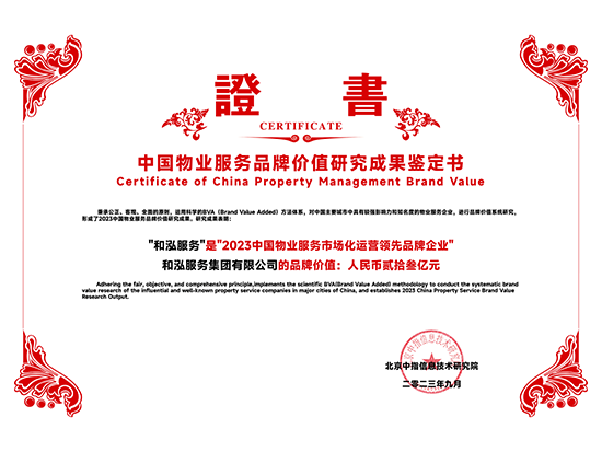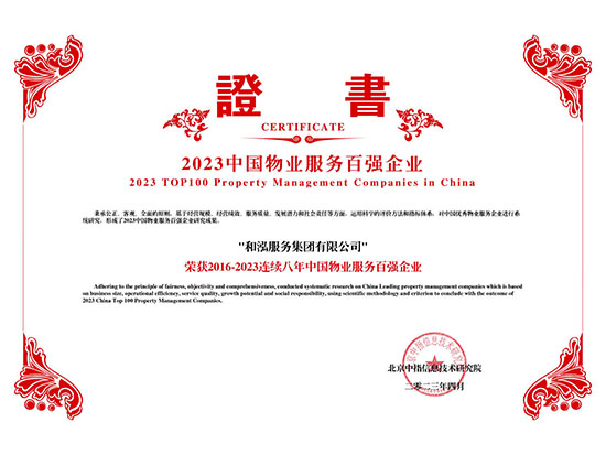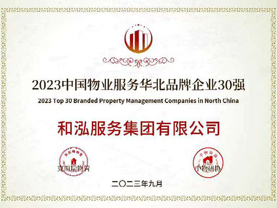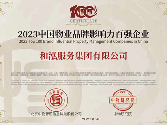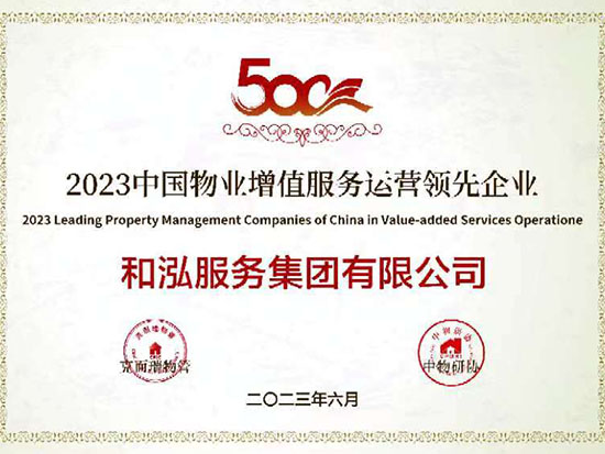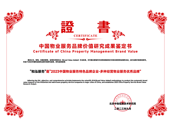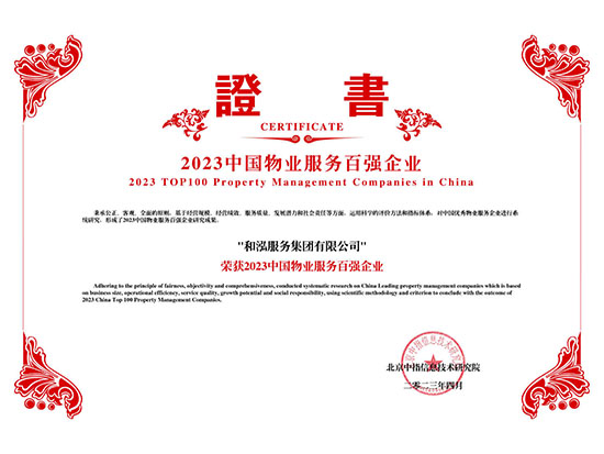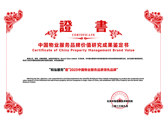 2023中國(guó)物業(yè)服務(wù)品質(zhì)領(lǐng)先品牌-和泓服務(wù) 2023中國(guó)物業(yè)服務(wù)市場(chǎng)化運(yùn)營(yíng)領(lǐng)先品牌企業(yè)-和泓服務(wù) 2023中國(guó)物業(yè)服務(wù)特色品牌企業(yè)-多種經(jīng)營(yíng)物業(yè)服務(wù)優(yōu)秀品牌-和泓服務(wù) 2016-2023連續(xù)八年百?gòu)?qiáng)企業(yè) 2023百?gòu)?qiáng)企業(yè)-29名 2023成長(zhǎng)性領(lǐng)先企業(yè) 2023服務(wù)力百?gòu)?qiáng)-59名 2023華北30強(qiáng) 2023華北品牌企業(yè)30強(qiáng) 2023科技賦能領(lǐng)先企業(yè) 2023中國(guó)物業(yè)品牌影響力百?gòu)?qiáng)企業(yè) 2023社會(huì)責(zé)任標(biāo)桿企業(yè) 2023增值服務(wù)領(lǐng)先企業(yè) 2023智慧物業(yè)領(lǐng)先企業(yè) 2023中國(guó)上市物企獨(dú)立發(fā)展TOP5 2023中國(guó)上市物企增長(zhǎng)速度TOP2 2023中國(guó)物業(yè)服務(wù)綜合實(shí)力百?gòu)?qiáng)企業(yè)第29名 2021中國(guó)物業(yè)服務(wù)企業(yè)品牌價(jià)值100強(qiáng) 2021中國(guó)物業(yè)服務(wù)華北品牌企業(yè)20強(qiáng) 2021中國(guó)物業(yè)服務(wù)百?gòu)?qiáng)企業(yè) 2021中國(guó)物業(yè)服務(wù)百?gòu)?qiáng)企業(yè)成長(zhǎng)性領(lǐng)先企業(yè) 2020中國(guó)物業(yè)服務(wù)百?gòu)?qiáng)企業(yè) 2020中國(guó)物業(yè)服務(wù)五星級(jí)項(xiàng)目 2020中國(guó)物業(yè)服務(wù)五星級(jí)項(xiàng)目 資質(zhì)證書(一級(jí)) 三標(biāo)體系認(rèn)證9000轉(zhuǎn)版1 三標(biāo)體系認(rèn)證9000轉(zhuǎn)版2 三標(biāo)體系認(rèn)證14000轉(zhuǎn)版1 三標(biāo)體系認(rèn)證14000轉(zhuǎn)版2 18000 2017年物業(yè)百?gòu)?qiáng)證書 2016年物業(yè)百?gòu)?qiáng)證書 2015年物業(yè)百?gòu)?qiáng)證書 2016品牌價(jià)值榮譽(yù)證書 中國(guó)物業(yè)管理協(xié)會(huì)常務(wù)理事單位 中國(guó)物業(yè)管理協(xié)會(huì)會(huì)員單位 北京市物協(xié)理事單位 北京物協(xié)會(huì)員單位 北京海淀物協(xié)會(huì)員單位 北京首都花園式社區(qū)2012 北京生活垃圾分類社會(huì)單位貢獻(xiàn)獎(jiǎng)2011 北京市保障性住房建設(shè)投資中心2017度 天津市五一勞動(dòng)獎(jiǎng)狀 沈陽(yáng)和泓花園四星2014 北京交大嘉園四星2013 北京彩虹街區(qū)四星2012 北京西山楓林四星2012 | ||